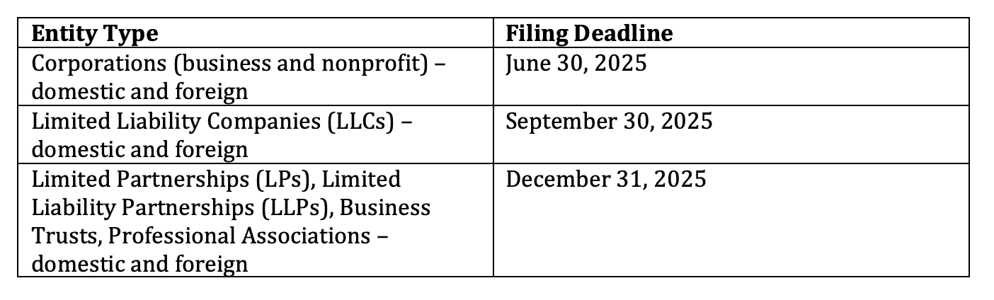 Key Filing Deadlines by Entity Type: